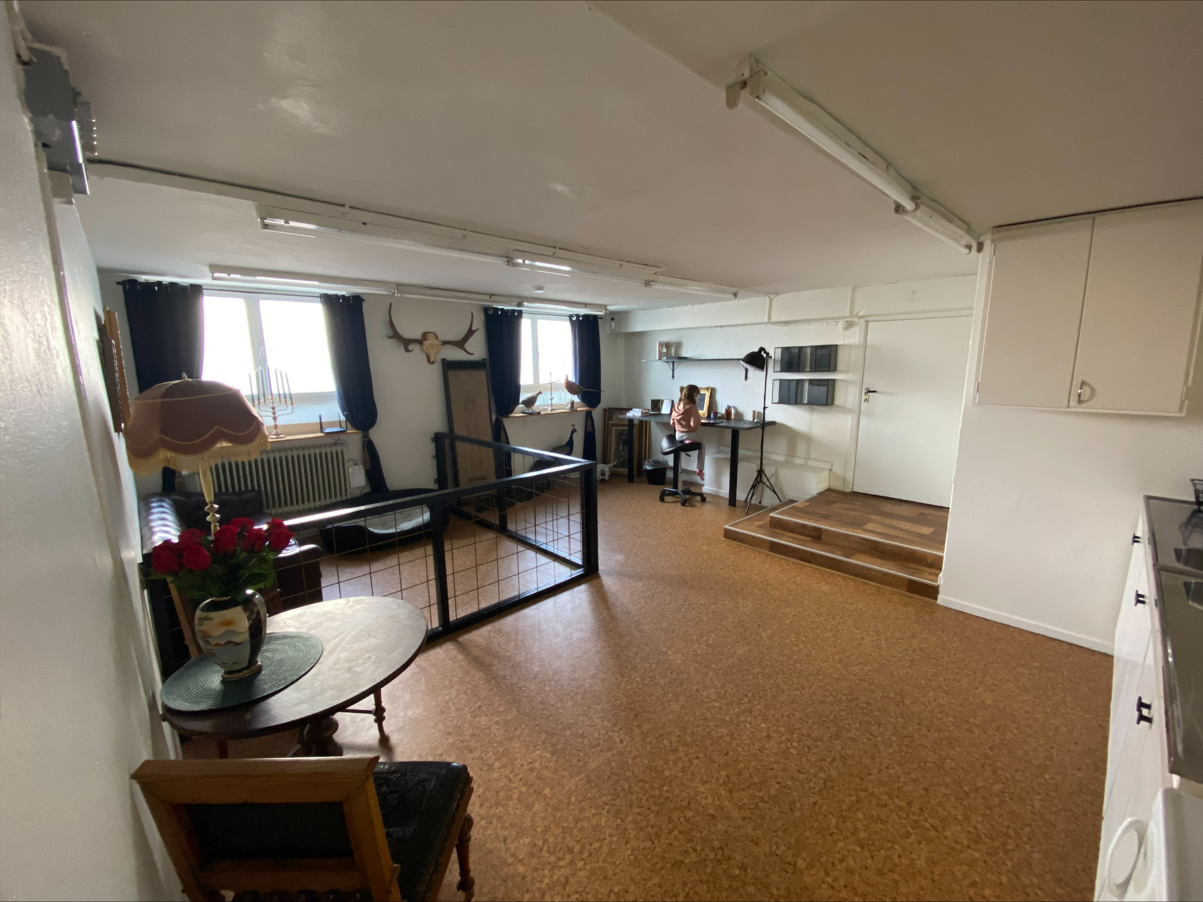 Trots att lokalen ligger i en källare får du ett härligt ljusinsläpp. Lokalen är uppdelad i två rum, i det ena rummet finns kök och toalett.